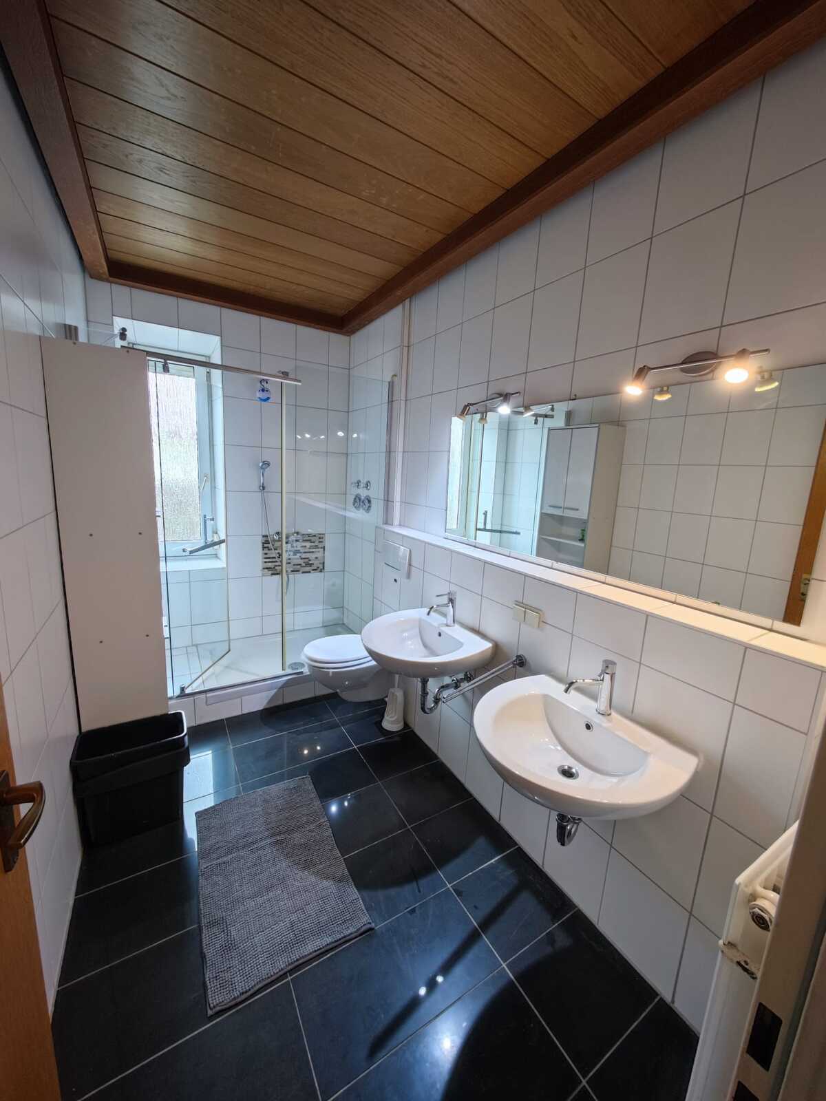 Das Badezimmer ist mit Waschbecken, Dusche (teilweise Badewanne) und WC ausgestattet. Hier sprechen wir uns ab, wer wann das Bad benutzen möchte.