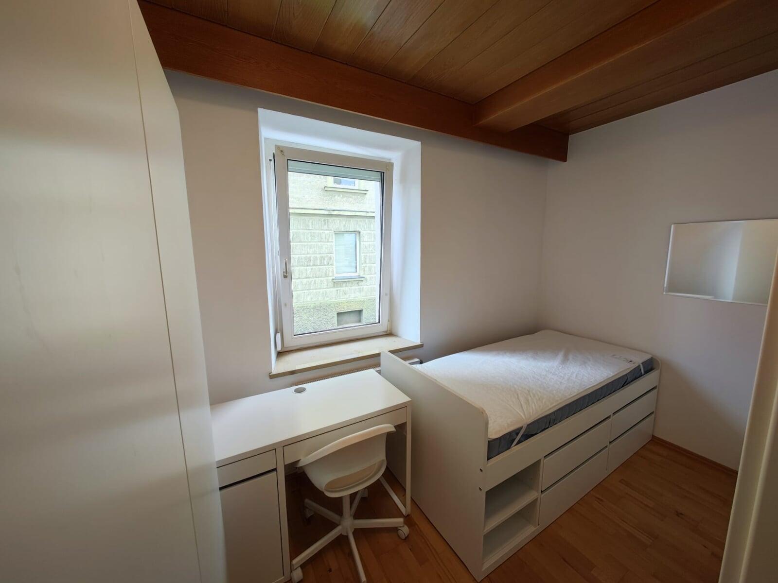 Dieses helle und voll möblierte Zimmer bietet dir alles, was du für ein entspanntes Wohnen brauchst – ohne versteckte Kosten und in bester Lage Kemptens.
